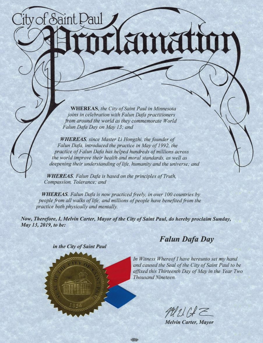 鉴于,明尼苏达州圣保罗市加入全世界法轮大法修炼者共同庆祝5月13日的世界法轮大法日;