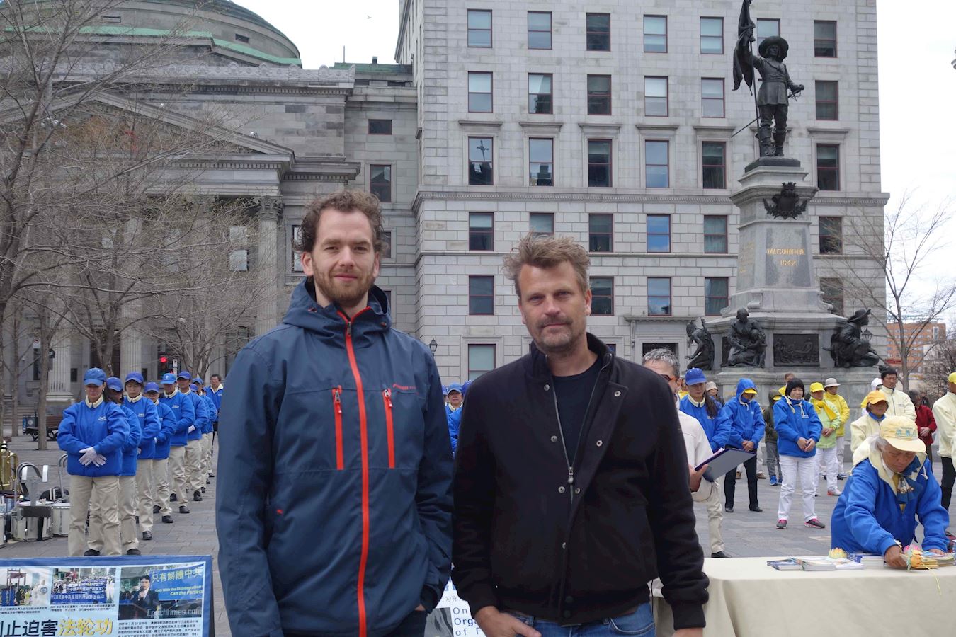![]() 图9:从荷兰来蒙特利尔商务旅行的IT高管Arjem Schomaveled(右)谴责活摘器官是“反人类”的罪行。 |