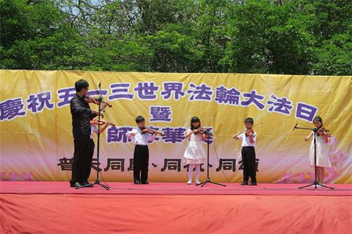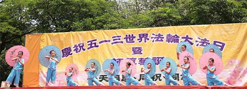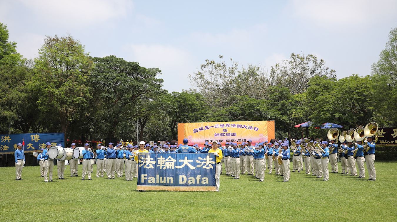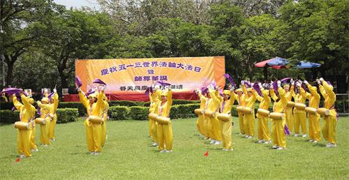 ![]() 图1:台湾中部法轮功学员庆祝“五一三世界法轮大法日”,恭祝李洪志师尊生日快乐。 |