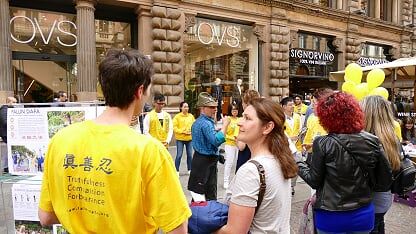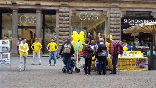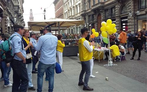 ![]() 图7:二零一九年五月十二日,米兰法轮功学员在市中心举行世界法轮大法日庆祝活动,民众了解真相。 |