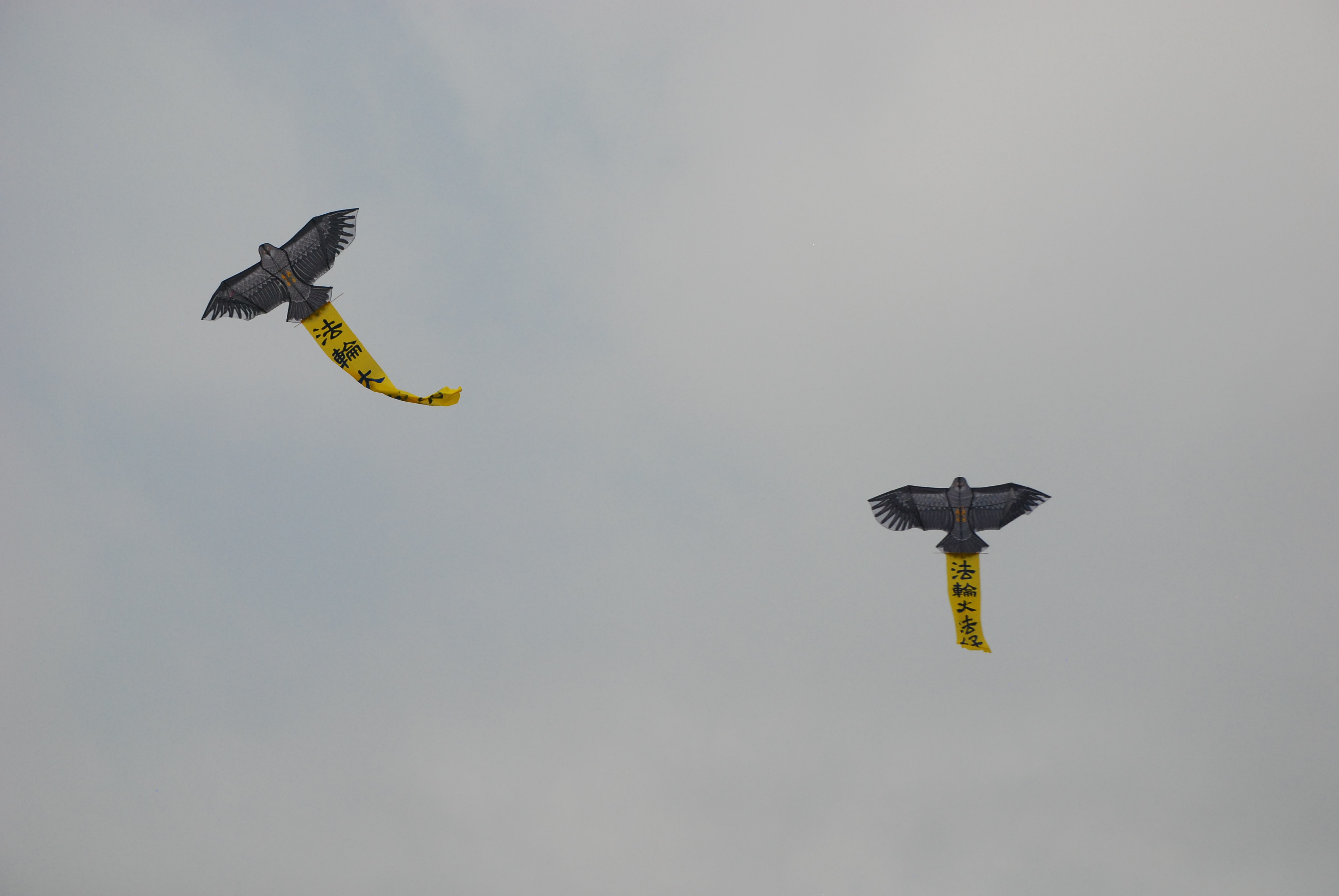 图8:风筝将“法轮大法好”带上天空。
