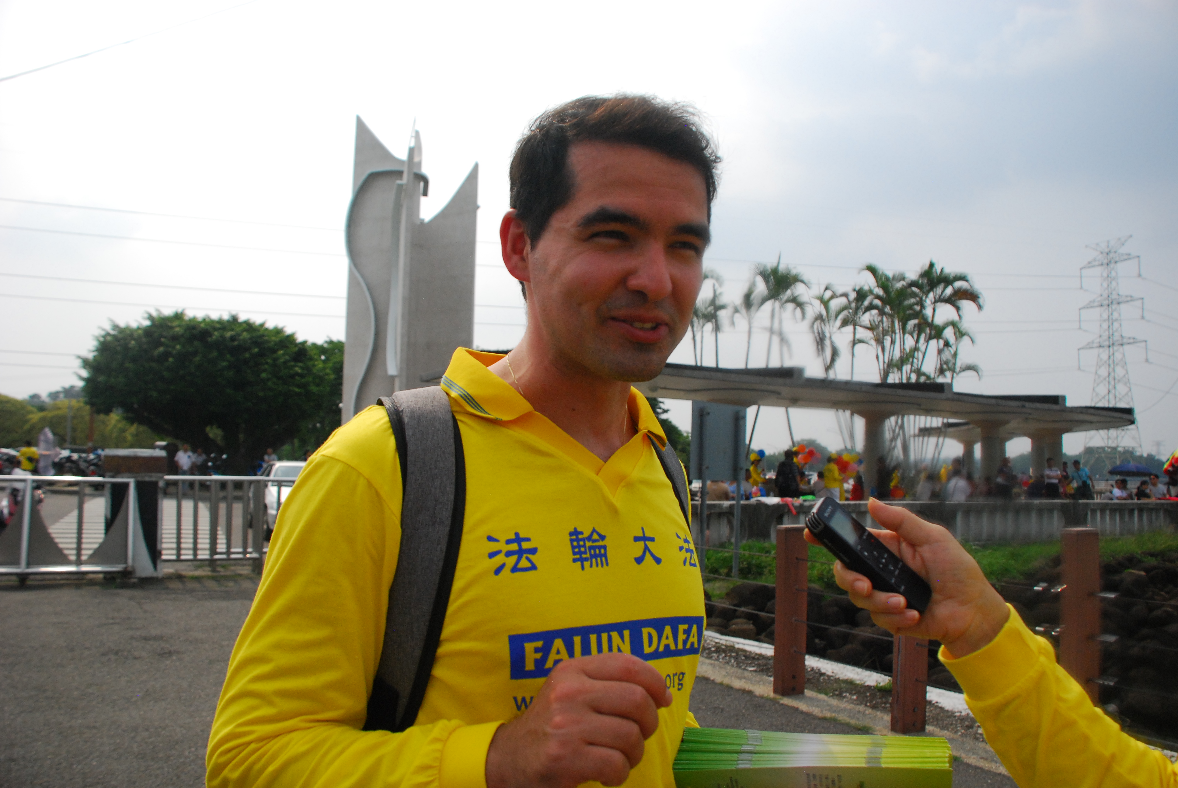 来台湾学中文的以色列学员阿忠拿着真相资料说:“修炼后了解人生意义,跟家人相处和谐,做事会先想别人,较能冷静面对一切事情。”