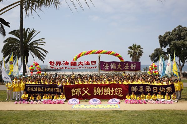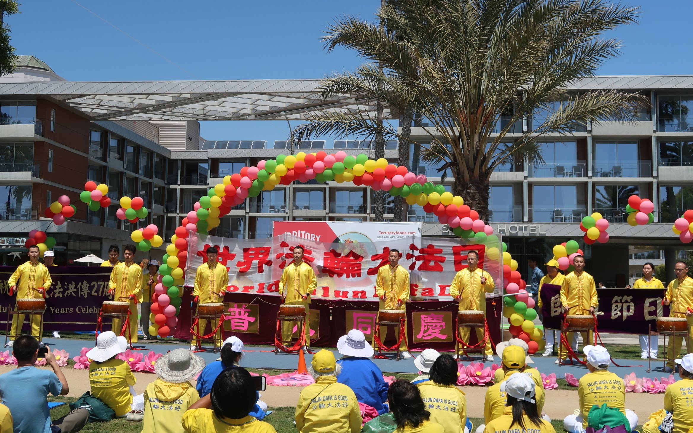 当天,洛杉矶部分法轮功学员在圣莫妮卡码头公园欢庆第二十届“五一三世界法轮大法日”、法轮大法弘传二十七周年暨法轮功创始人李洪志师父六十八岁华诞。