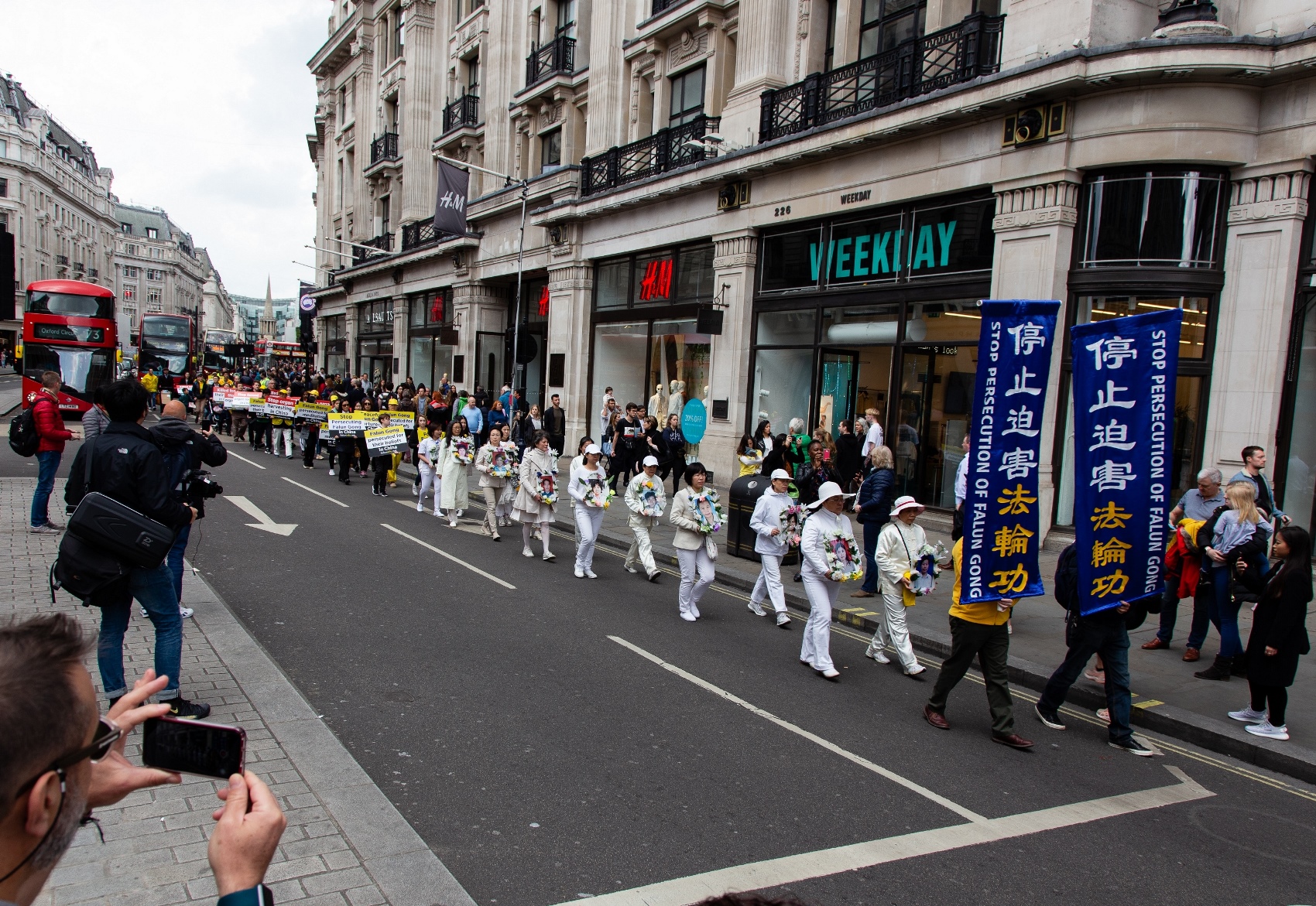 【明慧网二零一九年五月十五日】(明慧英国记者站采访报道)二零一九年五月十三日是第二十届“世界法轮大法日”暨法轮大法弘传二十七周年。这一天也是法轮功创始人李洪志师父六十八岁华诞。为了庆祝这个特别的日子,五月十一日,英国法轮功学员在伦敦市中心举行大游行,表达内心的喜悦以及修炼后身心受益的感恩,同时也希望更多的人们能了解大法的美好,共同制止中共的迫害