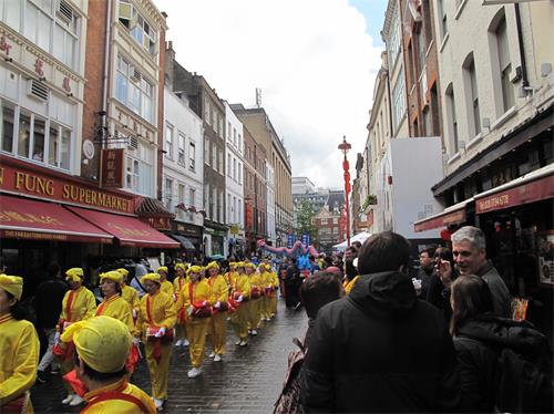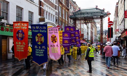 5~8:五月十一日,英国法轮功学员在伦敦市中心举行大游行,庆祝第二十届“世界法轮大法日”暨法轮大法弘传二十七周年。图为游行队伍在伦敦唐人街。