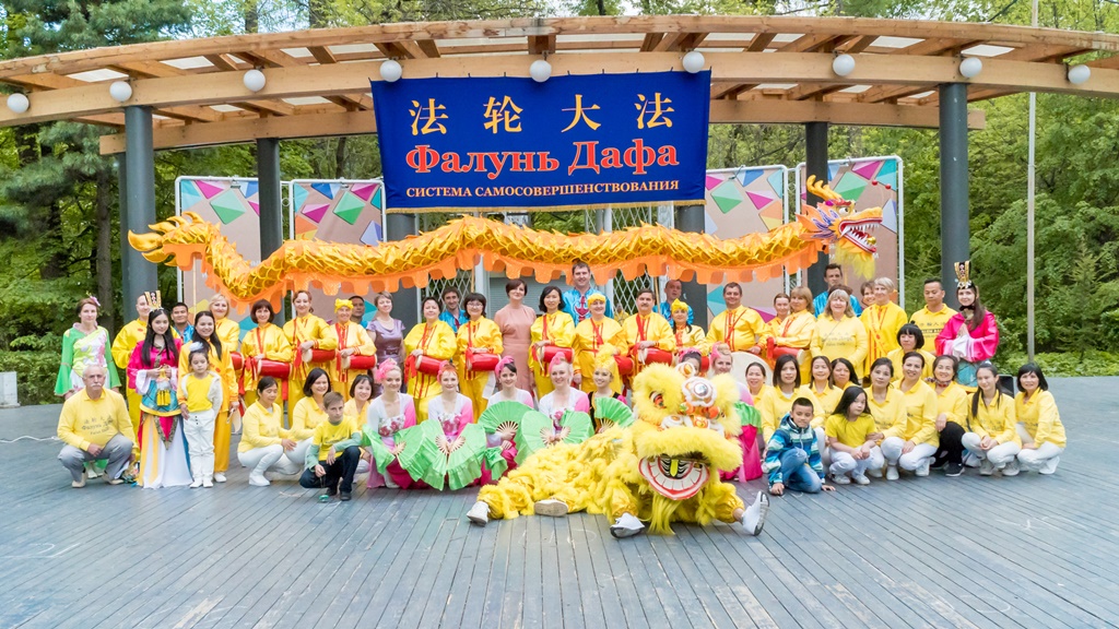 ![]() 图19:法轮功学员在莫斯科素科尔尼基公园(Sokolniki park)举行欢庆世界法轮大法日活动 |