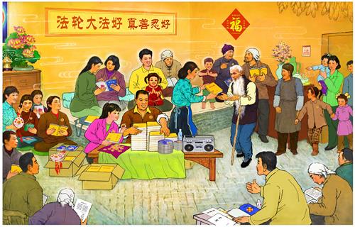 【庆祝513】工笔画:大法在洪传 快快找真相