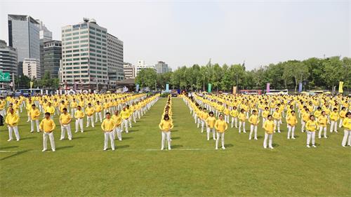 ![]() 图1~11:二零一九年五月十二日,韩国法轮功学员在首尔广场集体炼功庆祝世界法轮大法日。 |