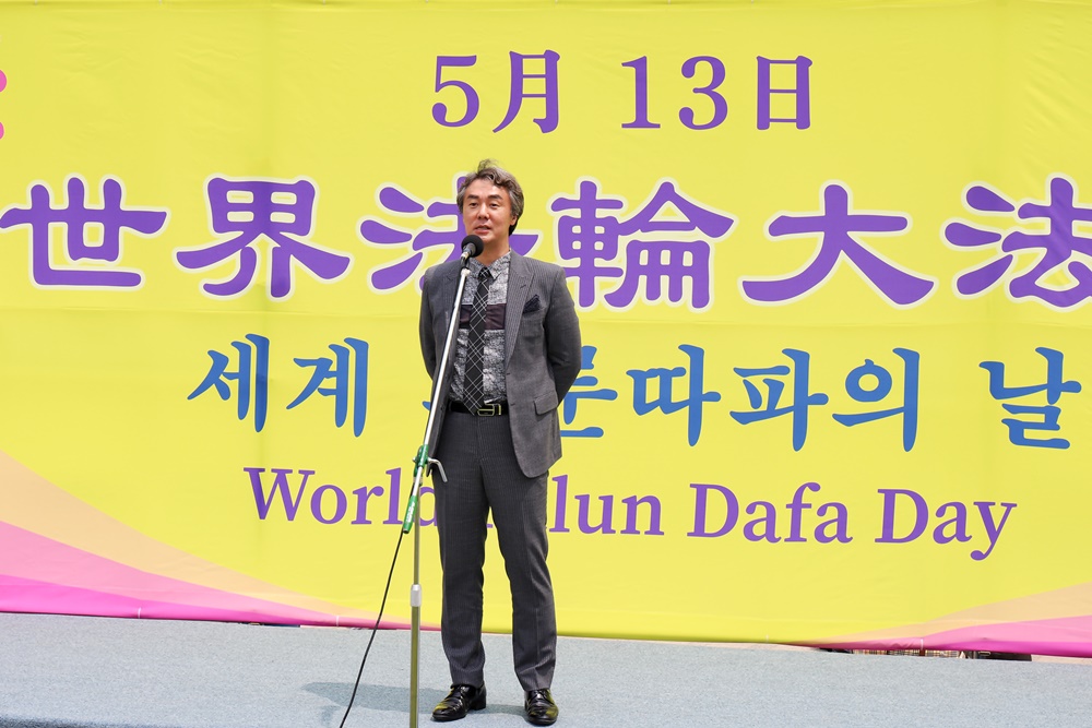 “时至今日才知道原来在韩国有这么多人修炼法轮功。如果各位坚守这份勇气,将这样的活动继续办下去,我相信总有一天,韩国的一般民众都会知道中国共产党的暴行,了解到这场镇压。”