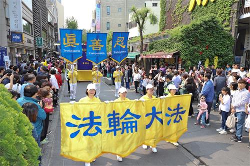 ![]() 图32:韩国首尔新木中学学生们说,法轮功的游行队伍给人有一种非常温暖的感觉。 |