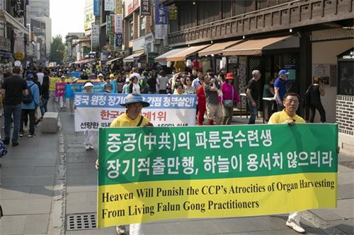 游行队伍进入仁寺洞步行街时,和母亲在此散步的崔俸硕看到在这个游行群体里,上到年老者,下到年轻人,各个年龄层的人都有,“留下了深刻的印象”。对在中国,法轮功学员仅因修炼就遭受群体性的迫害,他“感到非常痛心”。