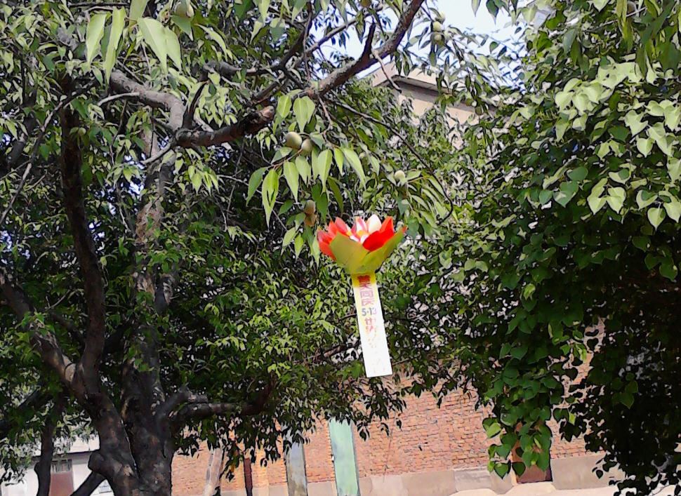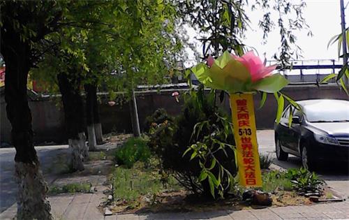 5月13日前后,辽宁某地出现的法轮功真相不干胶和手折莲花,以庆祝世界法轮大法日。