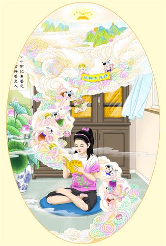 【庆祝513】工笔画:大法在洪传 快快找真相