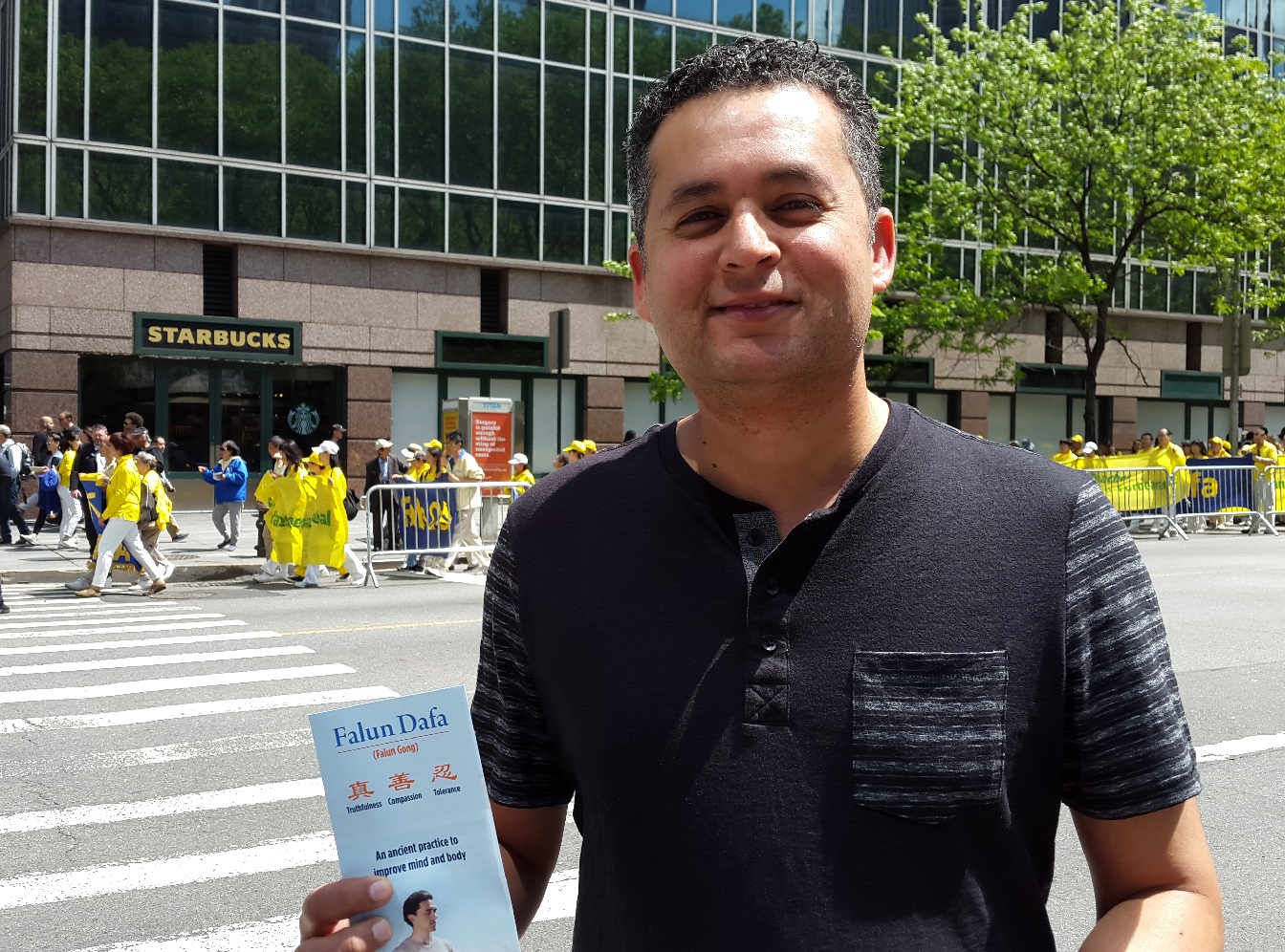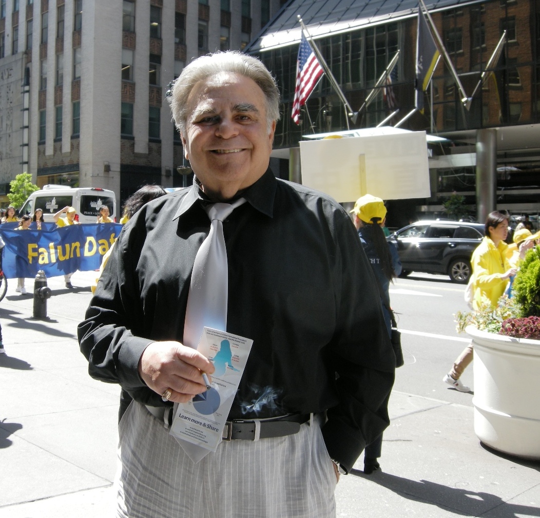 费城电脑软件发展工程师尼拉斯·比尔(Neeras Bir)看到法轮功游行非常高兴,他表示:我已经看过神韵演出,太美好了。我已经请了一本《转法轮》书回去,正准备修炼法轮功。法轮功学员把祥和、慈善的美好能量带给纽约,并且用非常善良的形式把“真、善、忍”的美好无条件的公开传送给各民族和国家。我将把这个中共迫害法轮功的消息告诉我所有的朋友,对法轮功二十年的迫害已经太长了,应该立即被制止。