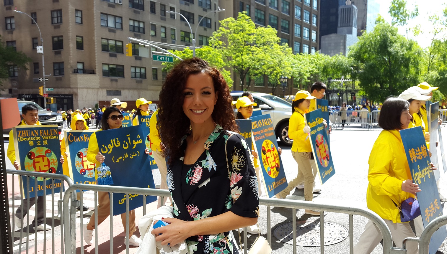 马特奥女士还表示:“我看到法轮功今天用游行这么好的方法揭露和制止迫害,我百分之百的相信,纽约人民今天看到法轮功的美好游行,都会来支持的。我相信我们政府也会百分之百支持的。”