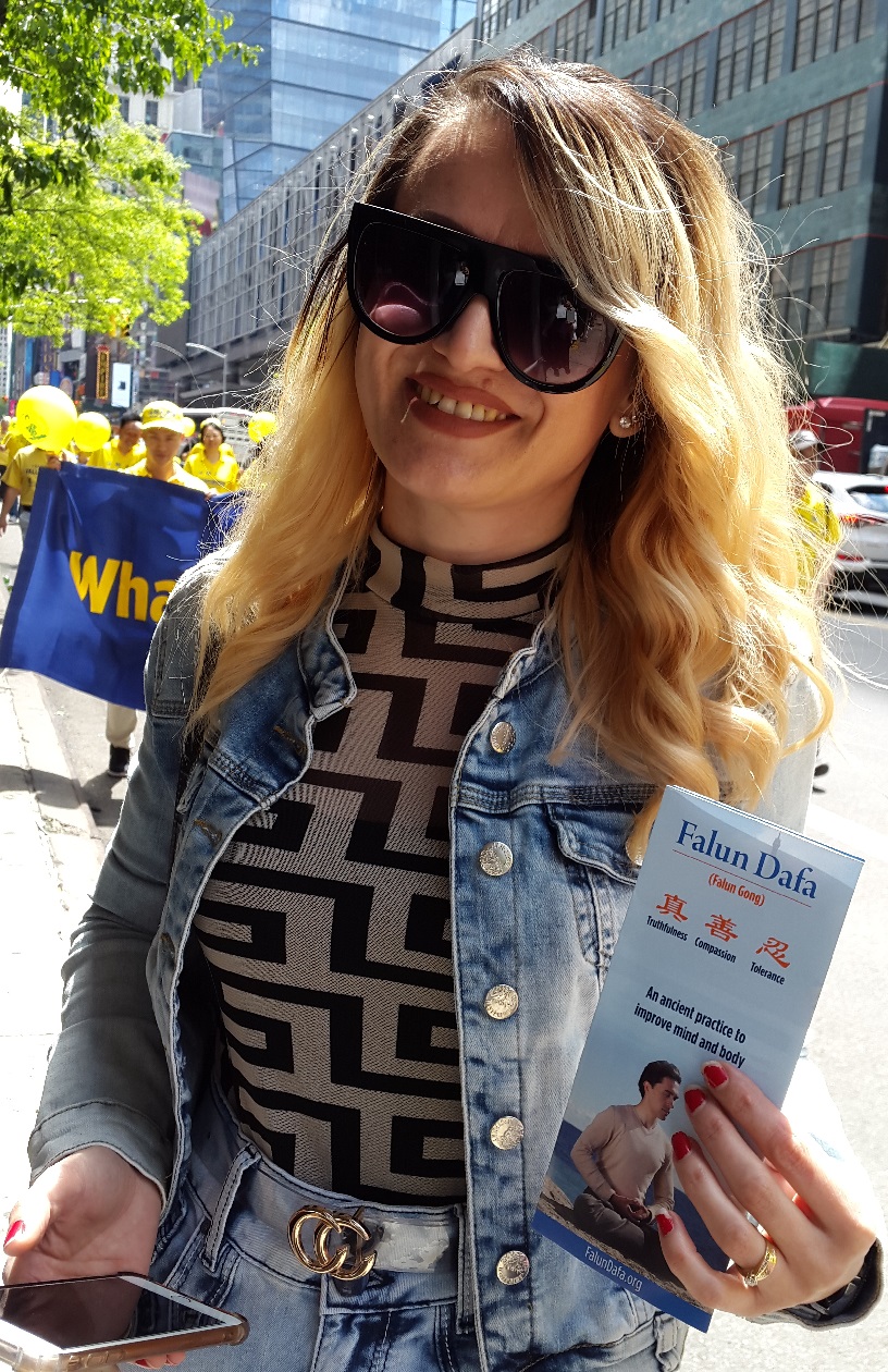 现居纽约的阿尔巴尼亚女士爱丽·嗨波维基(Eli Hebovija)是位老师,她表示:“我看到今天法轮功学员展现的都是中国传统文化的精髓,我们很高兴看到法轮功学员能在纽约自由游行和修炼。我会去了解更多。我会将真、善、忍的美好带给我的同事和家人。”