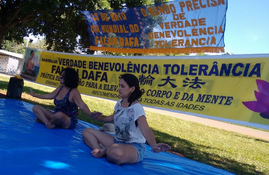 五月十二日,巴西利亚法轮功学员在公园炼功点上挂上“5.13世界法轮大法日”及“世界需要真善忍”的横幅,桌上有各种真相杂志和传单,还有纸莲花及中文福字挂卡。路过的市民被《普度》的乐曲所吸引,纷纷驻足观看,不少人表示喜欢深入了解法轮功。当人们得知五月十三日是世界法轮大法日,都表示祝贺;得到免费的纸莲花时,他们很惊喜,表示当今的社会什么都是钱,你们法轮功的东西都是赠送,还能真正得到护佑,他们都很愿意亲近学员们。