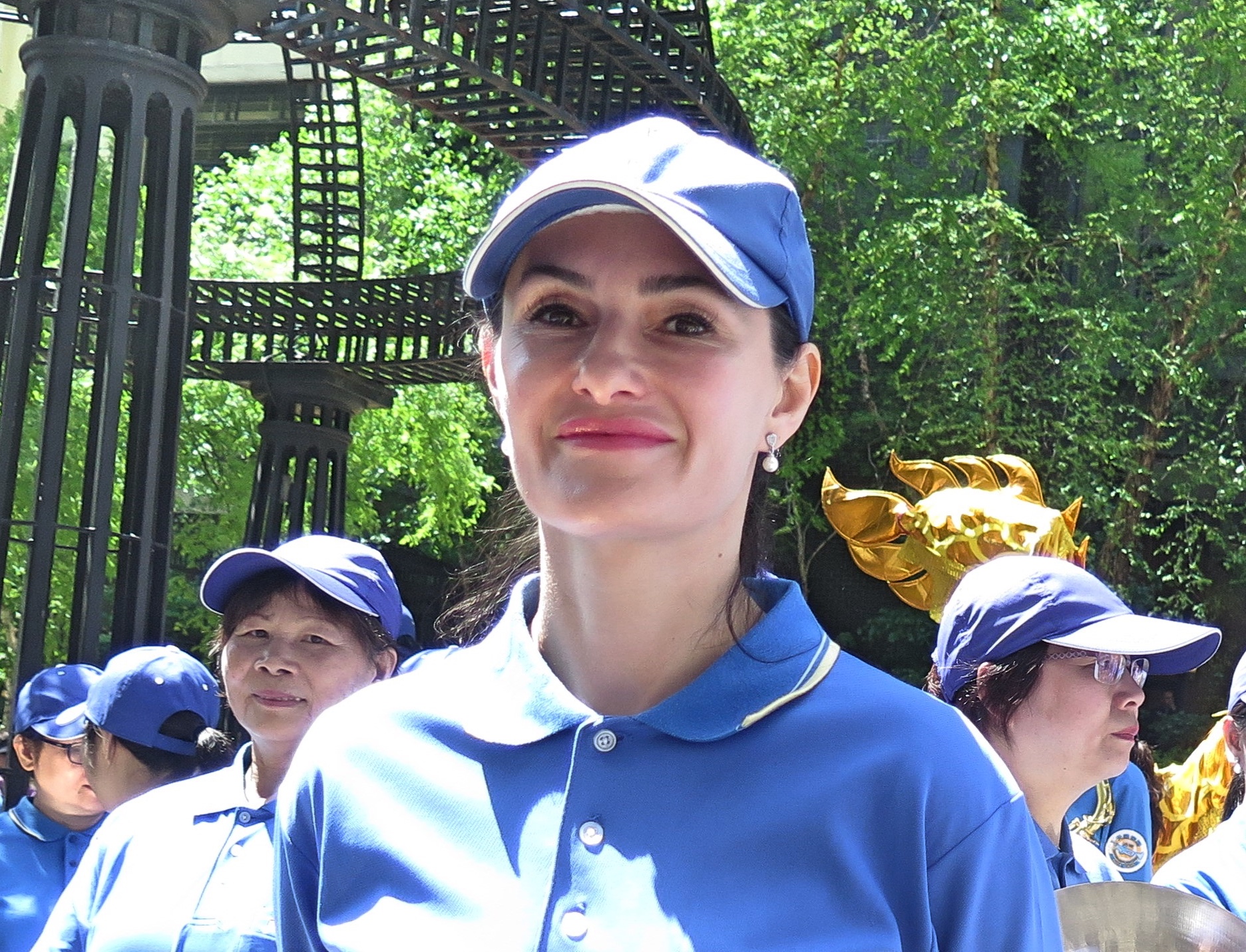 来自加拿大的法轮功学员卡梅利亚(Cameria)身穿天蓝色的天国乐团制服,她的脸上挂着愉悦的笑容。她修炼五年了,参加天国乐团四年。她对现场的感受是:“今天的活动非常美好,尽管我昨晚没有睡得太多,但我的感觉非常好。感谢师父!他给予我太多太多!”