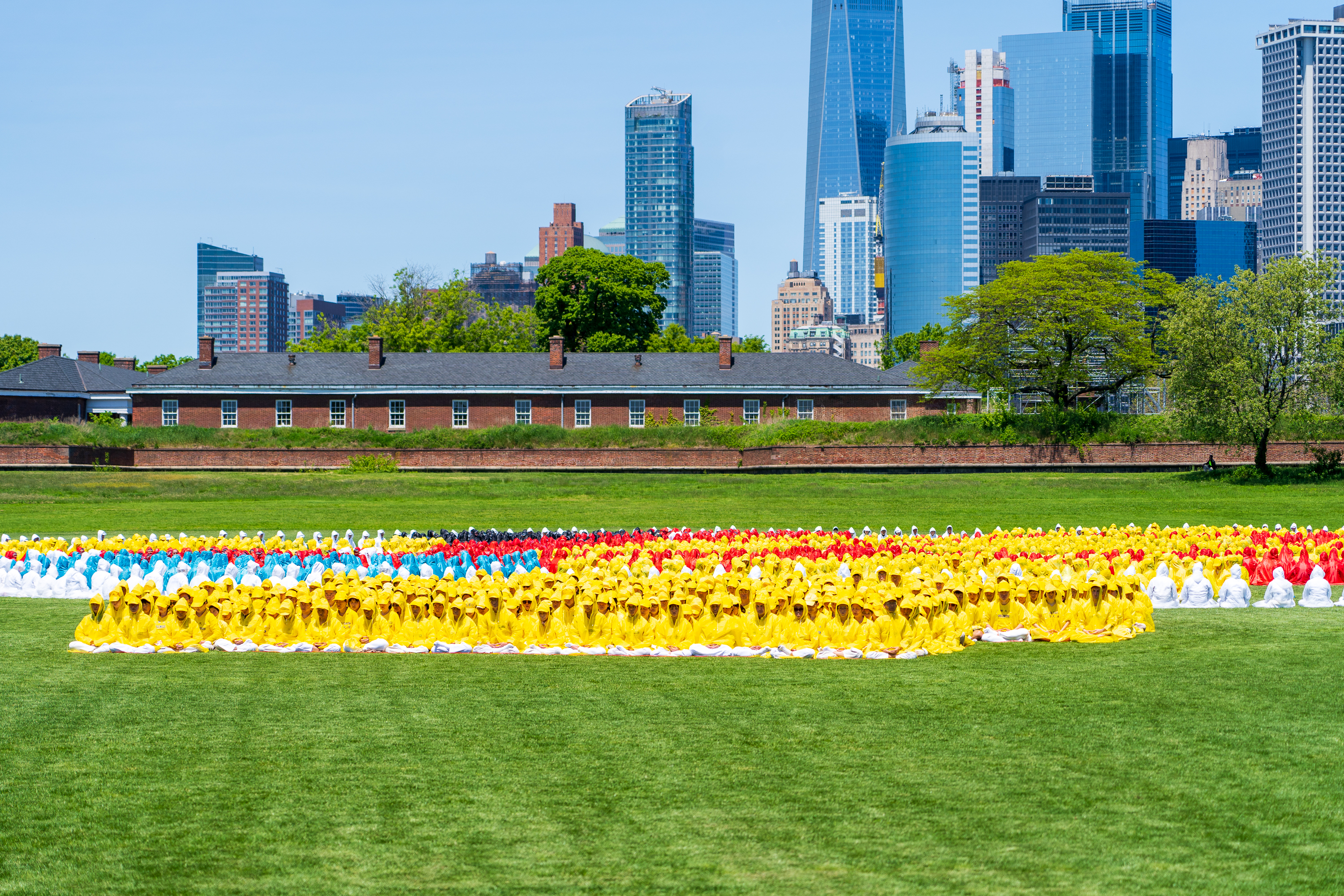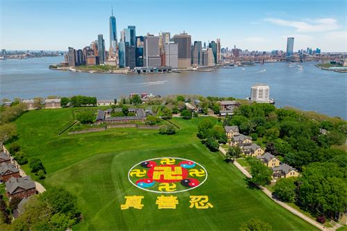 ![]() 图1~2:二零一九年五月十八日,五千法轮功学员在纽约市总督岛(Governor’s Island)排出巨型法轮图形和“真善忍”三个大字,场面壮观、殊胜。 |