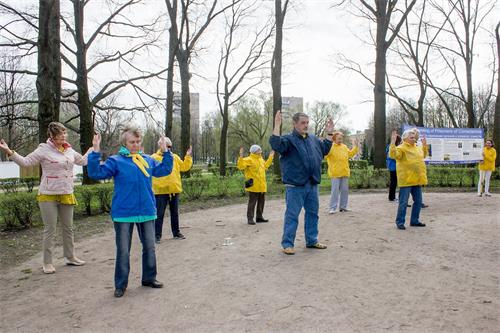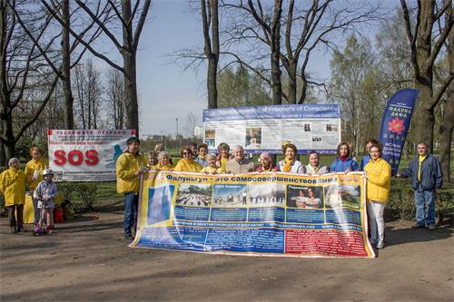 四月二十六日,星期六,法轮功学员聚集在圣彼得堡北部的一个大型公园举办活动,揭露中共对法轮功的迫害。现场摆放的展板内容包括法轮功的介绍,在世界范围内的自由广泛的弘传,以及在世界道德普遍衰落的现代社会对提高人们思想道德的有益影响,还有关于邪恶的共产主义势力在中国对法轮功的迫害。