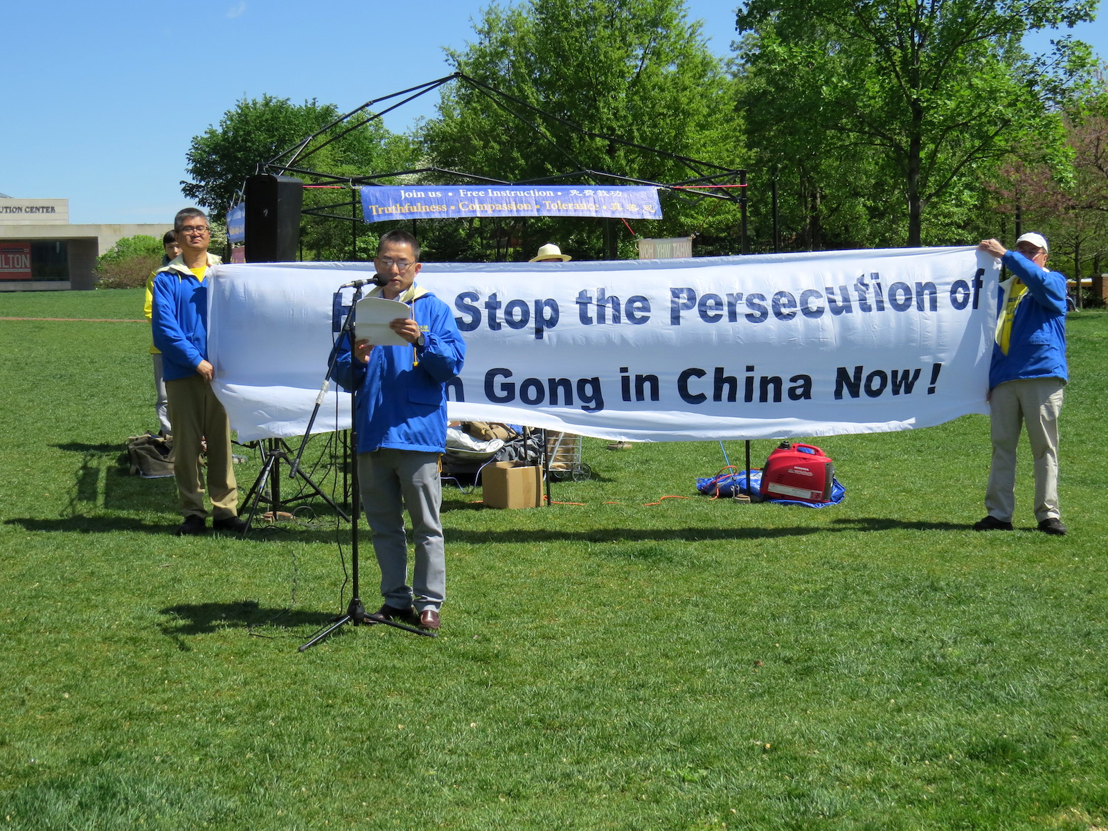 来自加拿大的史蒂夫,看到学员们在集体炼功,禁不住上前观看。当了解到在中国发生的迫害,尤其是法轮功学员被中共活摘器官后,他十分震惊,毫不犹豫地签名表示支持。临走时,他表示会到网上阅读更多信息。