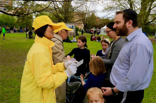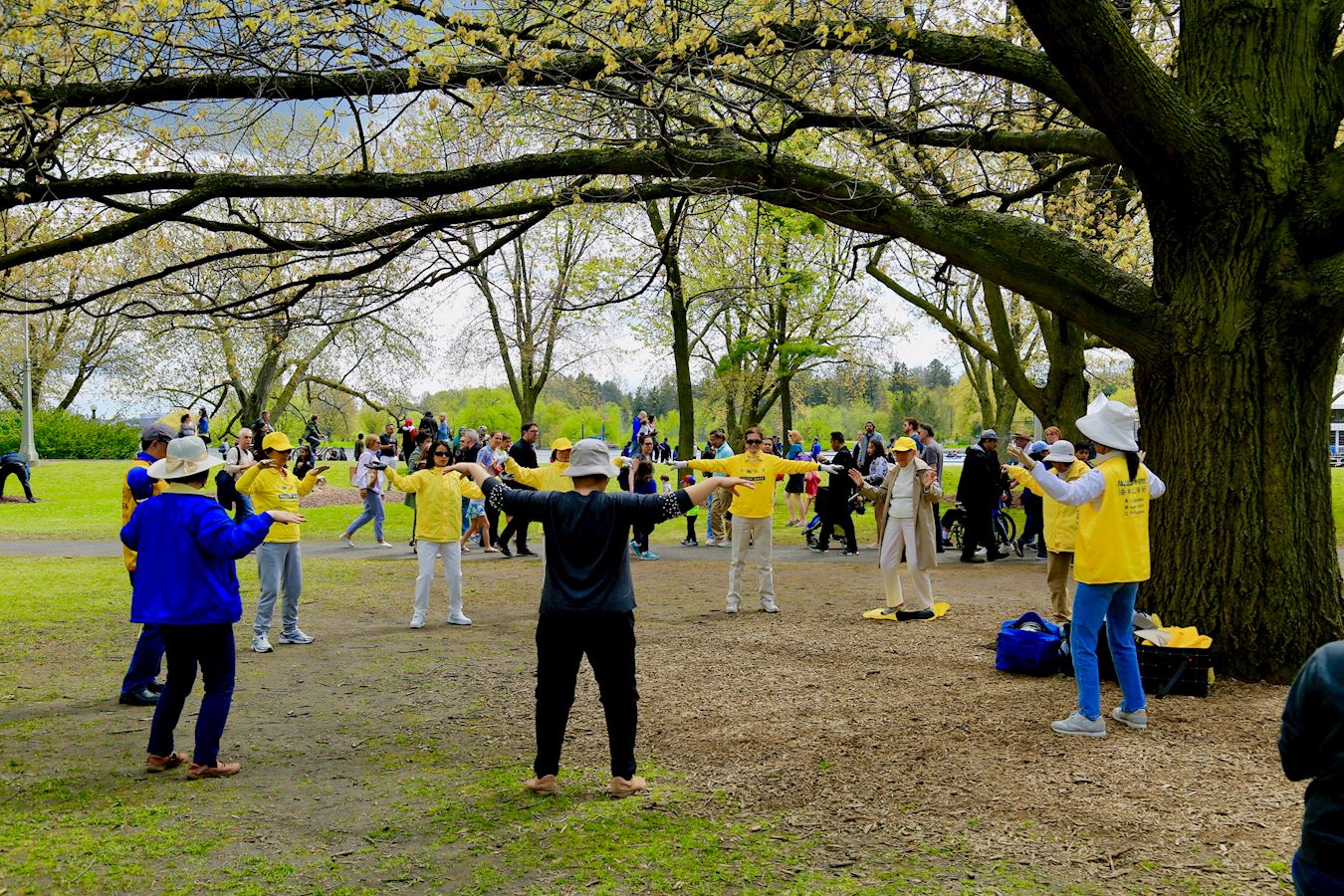 ![]() 图5:渥太华法轮功学员郁金香节弘法,并现场教功。 |
