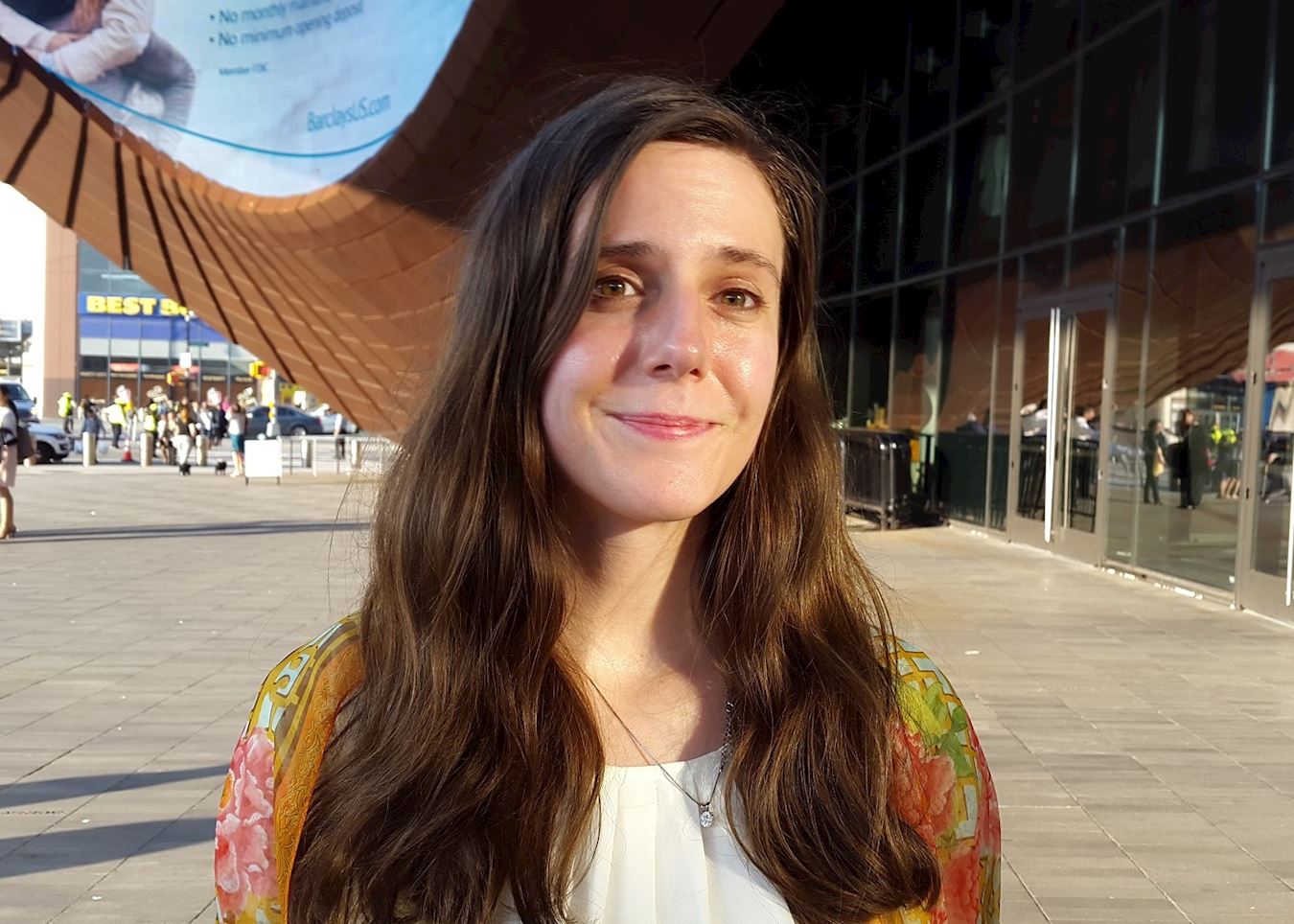 图2:加拿大法轮功学员埃斯特·哈克(Esther Hack)表示:神韵舞蹈演员的交流使我很感动