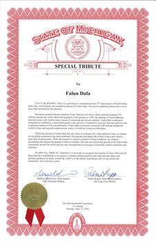 祝贺法轮大法日 密西根州再发特殊褒奖令(图)