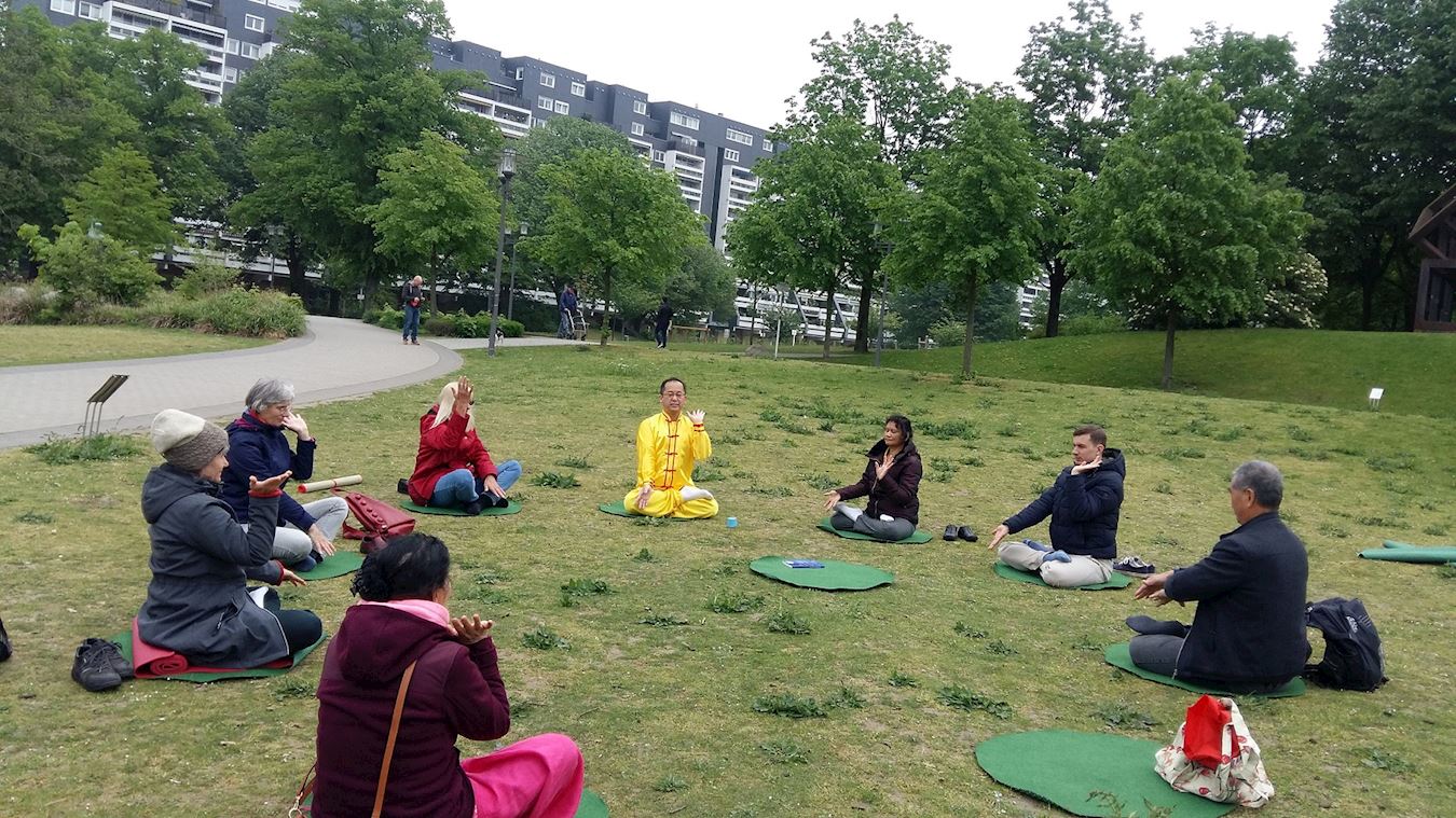在九个城市来参加炼功的有年轻人,年老人,在公园里面两个小时的学功中,他们都深切的体会到法轮功带来的内心的宁静。有的德国人在了解法轮功在中国受到迫害的真相,特别是活摘法轮功学员器官的真相后,身感震惊,有的在制止活摘法轮功学员器官的真相薄上签字。