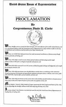 国会议员伊薇特·克拉克(Yvette Clarke)赠予褒奖状,祝贺大法日