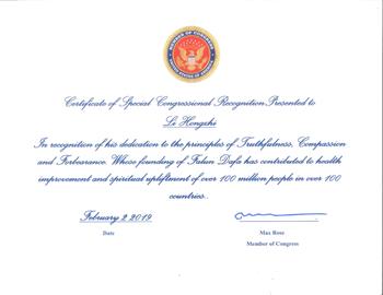 国会议员马克斯·罗斯(Max Rose)褒奖李洪志大师