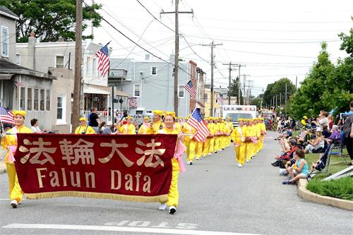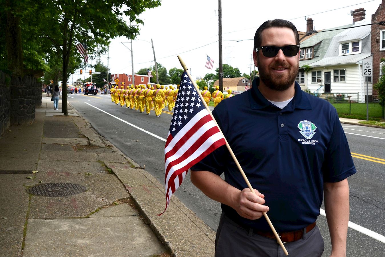 【明慧网二零一九年五月二十七日】二零一九年五月二十五日,美国宾州费城西郊的马库斯·胡克镇(Marcus Hook)举行“阵亡将士纪念日”游行,当地各民间团体的近五百人参加了这个传统游行,向美国军人表达敬意。由法轮功学员组成的腰鼓队第二次受邀参加,受到民众和活动组织者的欢迎。