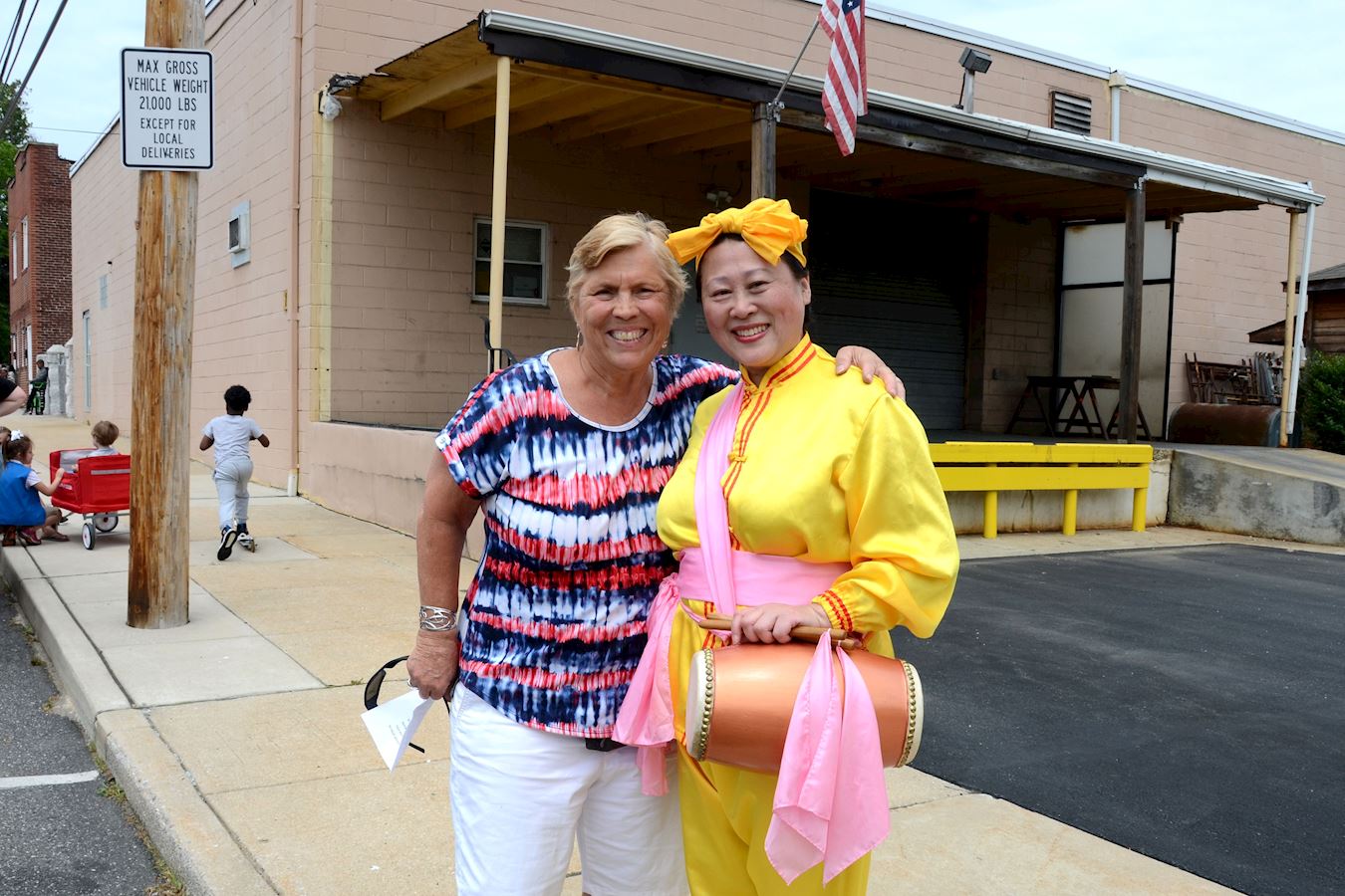 游行组织者特丽·史密斯(Terry Smith)女士是法轮功腰鼓队的超级粉丝。她对法轮功学员说:“你们今年能来参加游行真让我们太高兴了!你们前年来了,但去年太忙没能来,我们非常失望。希望你们每年都来,而且还希望你们能够来参加每年七月四日的美国独立日游行。”她感谢法轮功腰鼓队丰富了当地的多元文化。