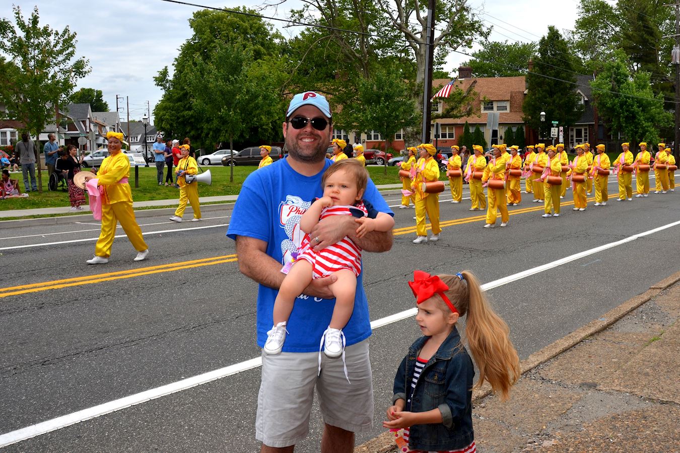 带着两个孩子和家人看游行的瑞克(Rick)先生是第一次见到法轮功腰鼓队。他说在这个镇上他第一次看到这个人数众多的亚裔游行团体,而且素质非常高,让他很惊讶,也很高兴。“他们的腰鼓很独特精彩,音乐也非常动听”,瑞克先生说,“我很喜欢他们,希望能常见到他们。”