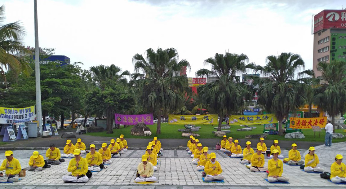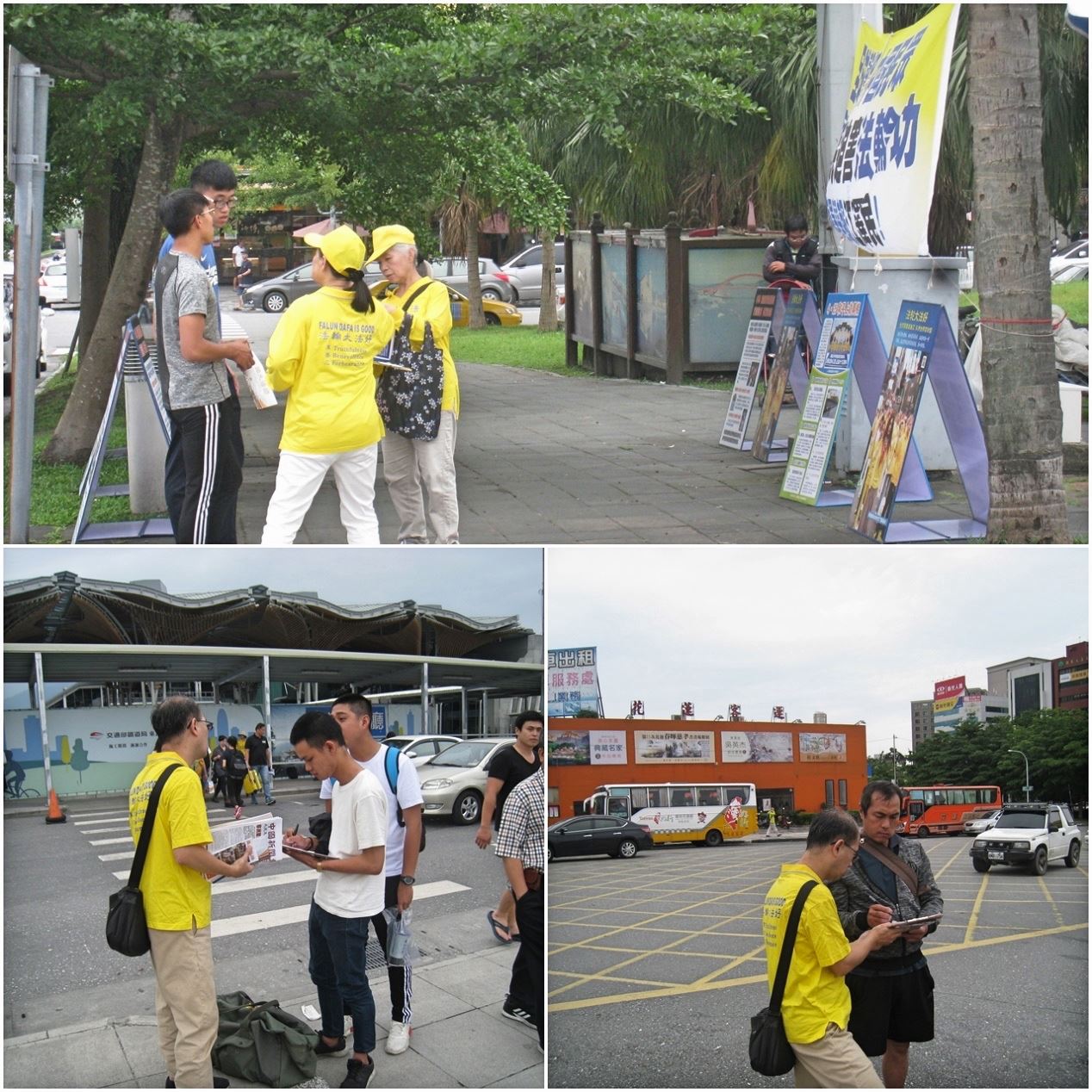 ![]() 图1:二零一九年五月二十六日,法轮功学员在花莲火车站广场前,表演五套功法。 |
