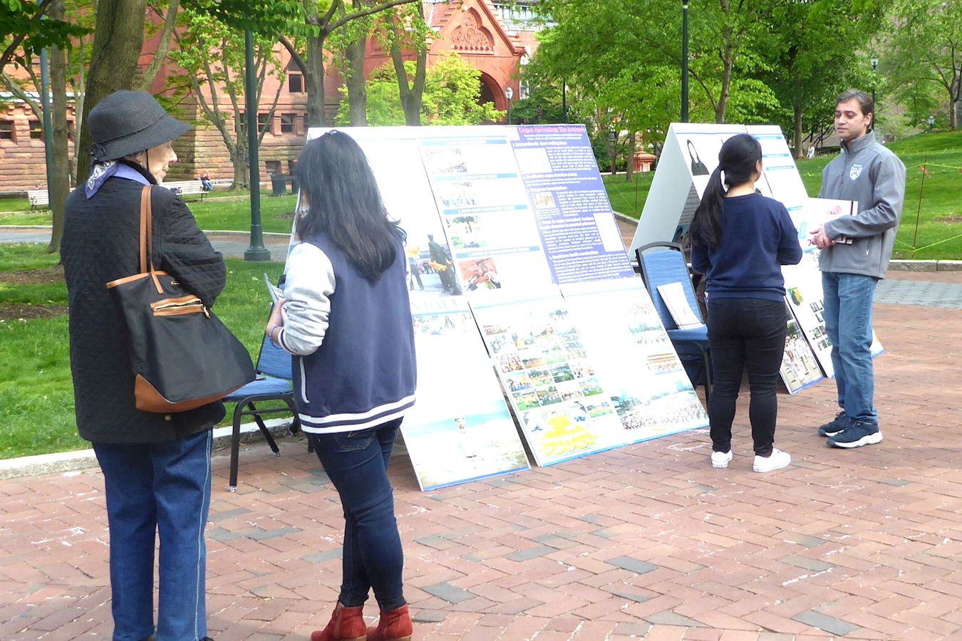 【明慧网二零一九年五月三日】二零一九年四月二十九和三十日两天,美国常青藤名校宾夕法尼亚大学“法轮大法俱乐部”在校园里的范·佩尔特图书馆(Van Pelt Library)前举办了图片展,介绍法轮大法(又称法轮功)的美好,揭露中共迫害法轮功,以及活摘法轮功学员器官的罪行,真相震撼了众多师生及游客。