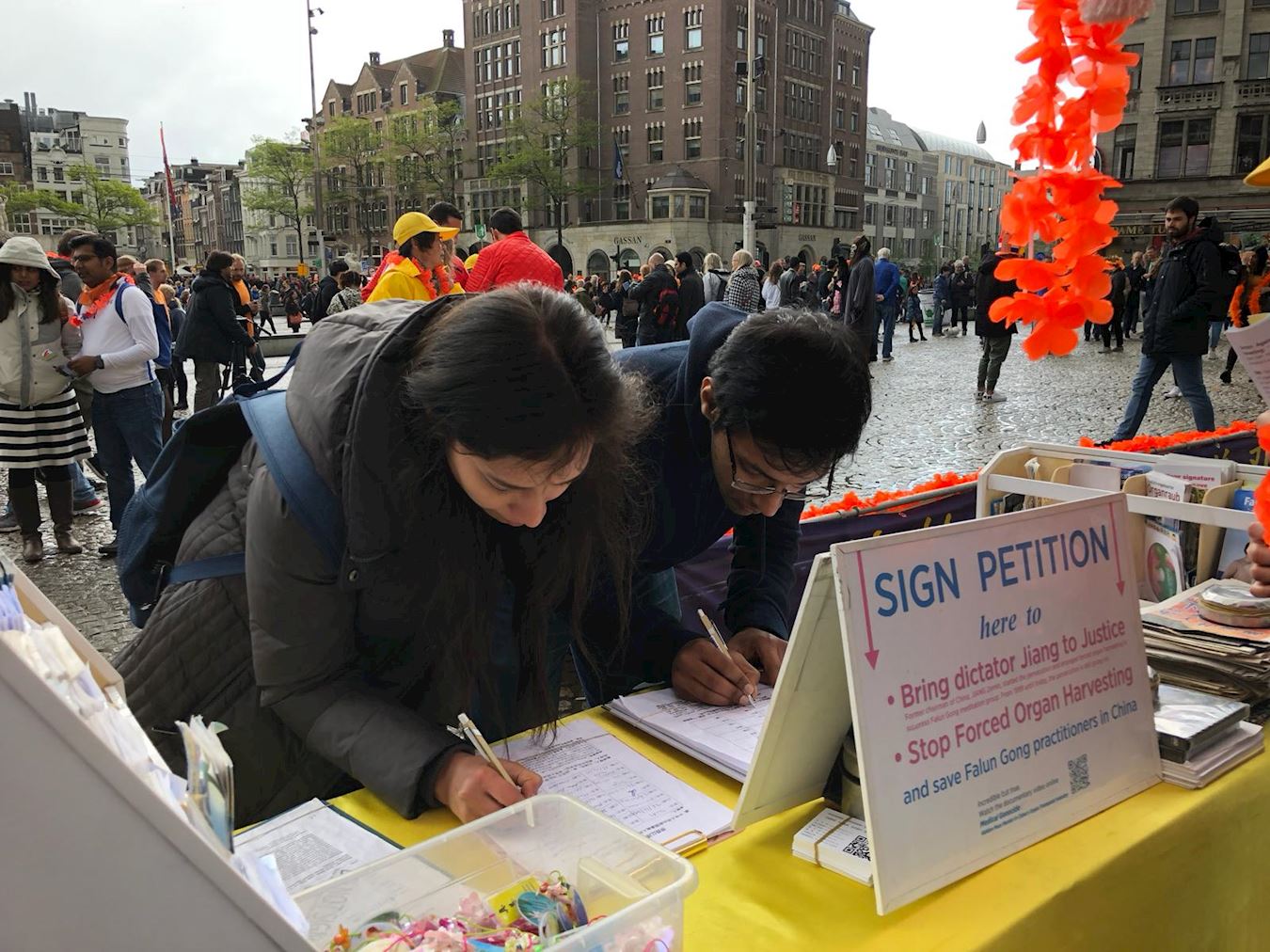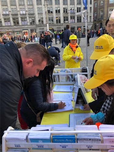 在这个美好的节日,很多荷兰民众和外国游客了解了真相,在反迫害的征签表上表达了自己的正义心声。