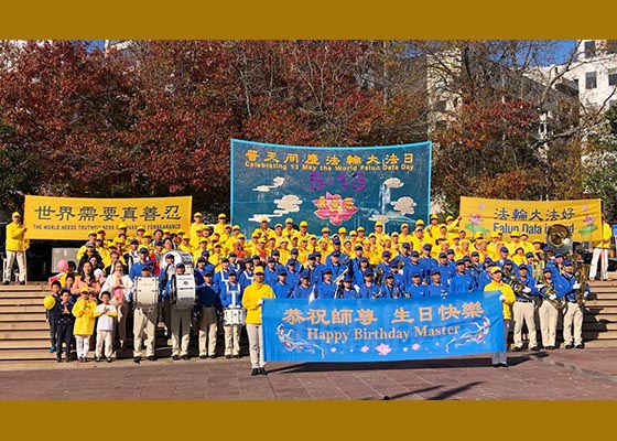 - 美首都庆法轮大法日 各族裔学员谢师恩(图)- 五月四日,美国首都华盛顿DC及周边地区的部份法轮功学员在国家广场集体炼功,庆祝“法轮大法日”,并以舞蹈、歌唱和朴实的话语表达对李洪志师父的无限感恩。