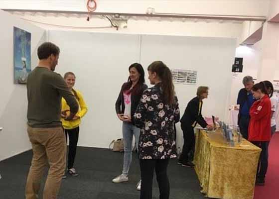 - 奥地利格拉茨春天博览会 民众喜闻法轮功(图)- 四月二十六日开始,奥地利法轮功学员参加了为期六天的春天博览会,并在介绍健康保健的展馆向民众介绍法轮功。