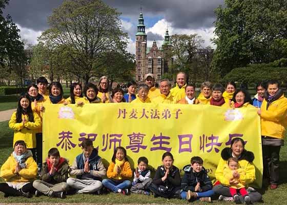 - 丹麦哥本哈根市中心庆祝法轮大法日(图)- 丹麦和部份瑞典法轮功学员于二零一九年五月四日,聚集在哥本哈根市中心举行活动,庆祝法轮大法弘传世界二十七周年,恭贺法轮功创始人李洪志先生华诞。