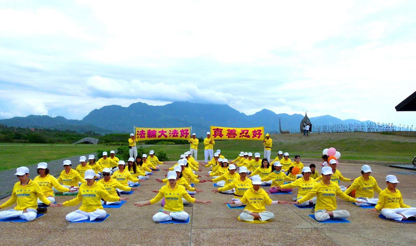 '图二~三:台东法轮功学员集体炼功,展现大法美好。'