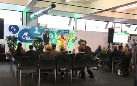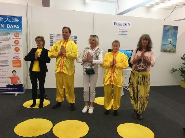 【明慧网二零一九年五月六日】奥地利格拉茨的春天博览会内容丰富,每年都吸引很多民众前来参观。二零一九年四月二十六日开始,奥地利法轮功学员参加了为期六天的春天博览会,并在介绍健康保健的展馆向民众介绍法轮功。周六和周日的时候,法轮功学员在舞台上还举行了“什么是法轮大法”的讲座,以及五套功法演示和具体的解说。