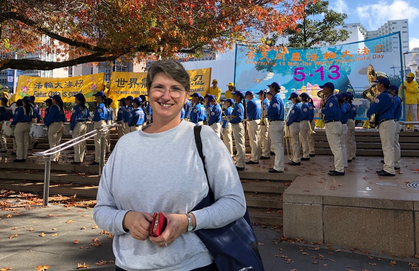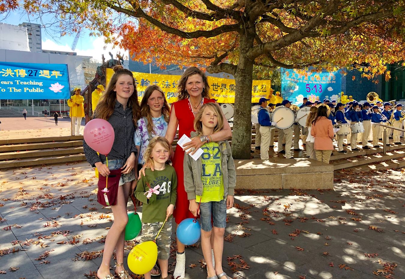 一位来自荷兰的母亲带着她的四个孩子路过广场,她们停下脚步,聚精会神观看表演。这位母亲说:“孩子们喜欢(天国)乐队的音乐。我也喜欢腰鼓队的歌曲。”得知法轮功是一种修身养性的信仰,她说,她孩子多,平日里很繁忙,所以每当夜深人静的时候,她特别喜欢那种一个人安安静静的感觉。她说有朝一日,她也会炼功,她特别认同“真、善、忍”的理念,世界都需要“真、善、忍”。她说:“从我看到的和了解到的,你们(法轮功学员)做得很好,更多人应该来修炼法轮功。”