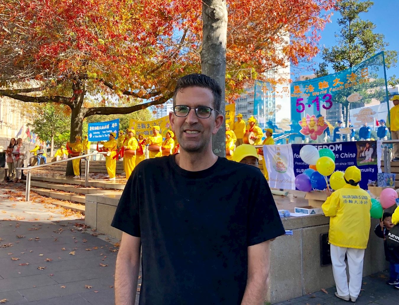 ![]() 图1:庆祝五·一三世界法轮大法日,新西兰法轮功学员谢师恩 |