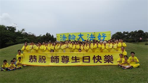 今年适逢法轮大法弘传全球二十七周年,为感谢李洪志师父传出了高深大法,让学炼者身心受益、道德回升,当日上午,屏东法轮功学员们来到风光明媚的垦丁社顶公园,排列整齐队伍集体炼功,展示功法,当美妙清亮的炼功音乐响起,学员整齐划一的动作,炼功时祥和的氛围,吸引了众多游客的目光,纷纷驻足观看。随后,碧绿草坪上立起了“恭祝师尊生日快乐”的横幅,后侧“法轮大法好”的标语,在蓝天白云的衬托下,显得特别耀眼。一切就绪,学员们高声齐颂:“台湾屏东大法弟子恭祝师尊生日快乐!”诚心的祝福,声音响彻云霄。学员们表示,非常感谢李洪志师父将法轮功公开传出,“真、善、忍”法理浅明,让学炼者遵循传统道德为人处世,修炼后良善的转变,使得身体健康,精神愉悦。