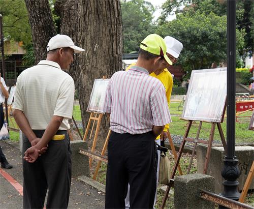 ![]() 图12~13:2019年5月5日,在高雄桥头糖厂提前庆祝“世界法轮大法日”,很多游客现场学功。 |