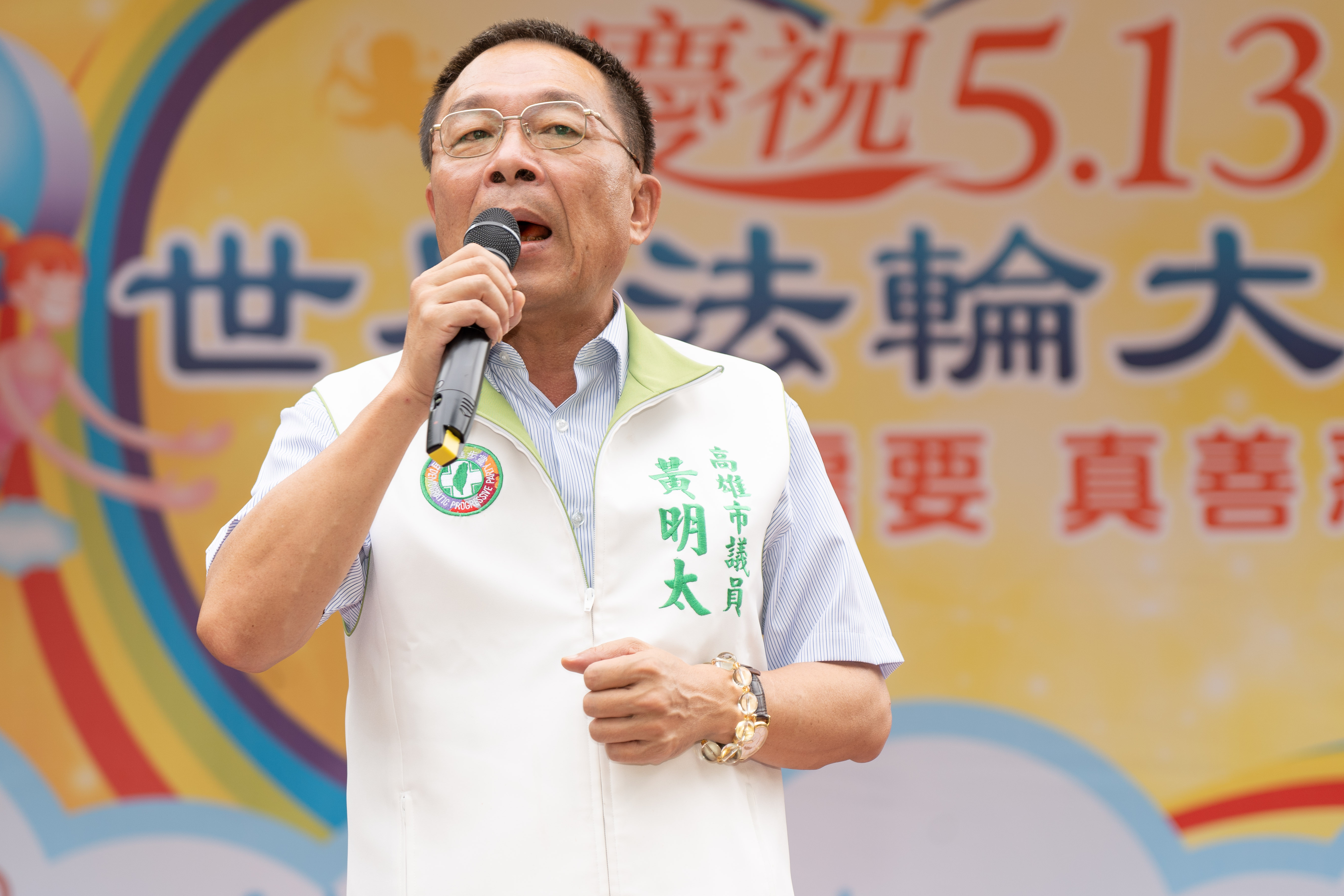 议员黄明太今天很早就来到现场一起欢庆“世界法轮大法日暨法轮功师父的生日”,黄议员说:“感谢大家藉由这个庆祝活动告诉市民‘法轮大法好’。虽然集权的中共还在打压法轮功,但事实证明海外炼法轮功的人越来越多,我也在观察法轮大法为什么会受到这么多民众的喜好,必有其原由。我所认识的法轮功学员,每一个都是彬彬有礼,而且对社会非常有贡献。相信在大家的努力弘扬之下,法轮功能给高市带来一个很温馨的、很健康的、很和谐的一个社会。”