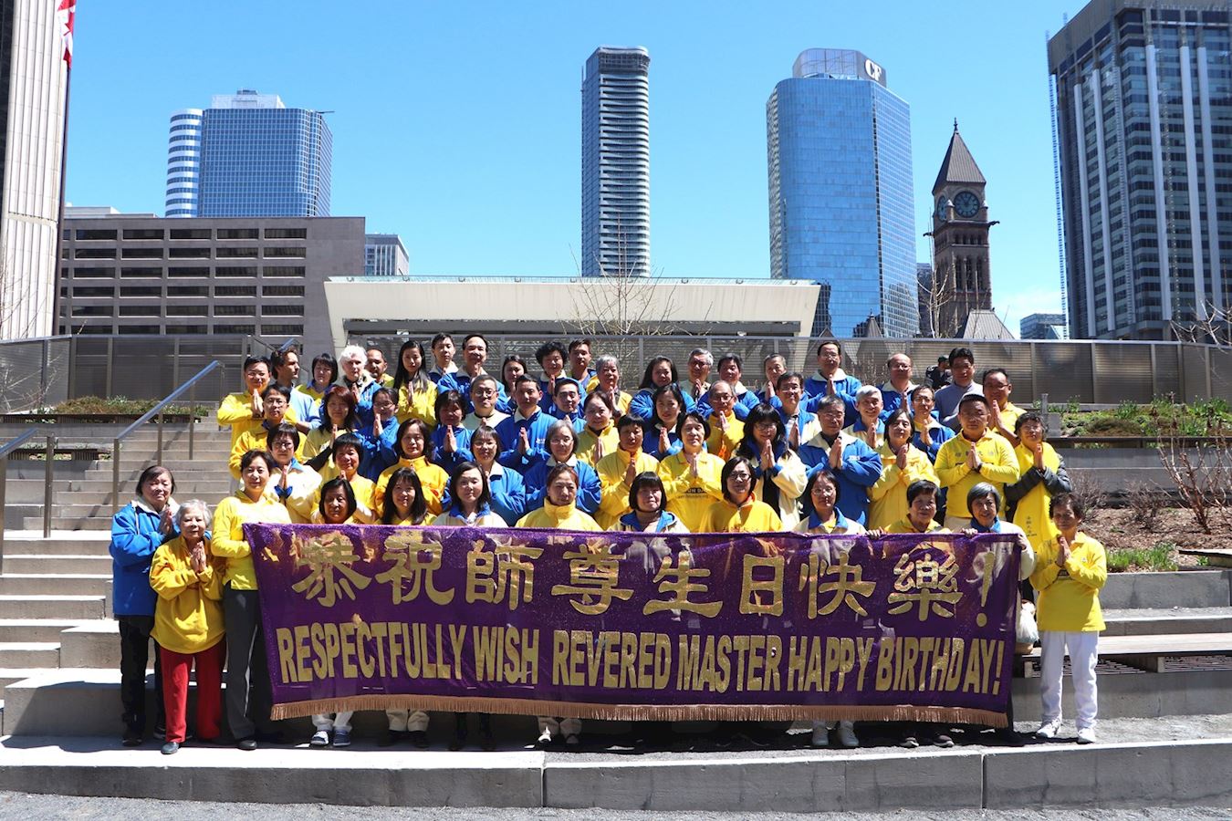 ![]() 图1:多伦多法轮功学员在第二十届世界法轮大法日恭祝师父生日快乐! |