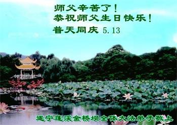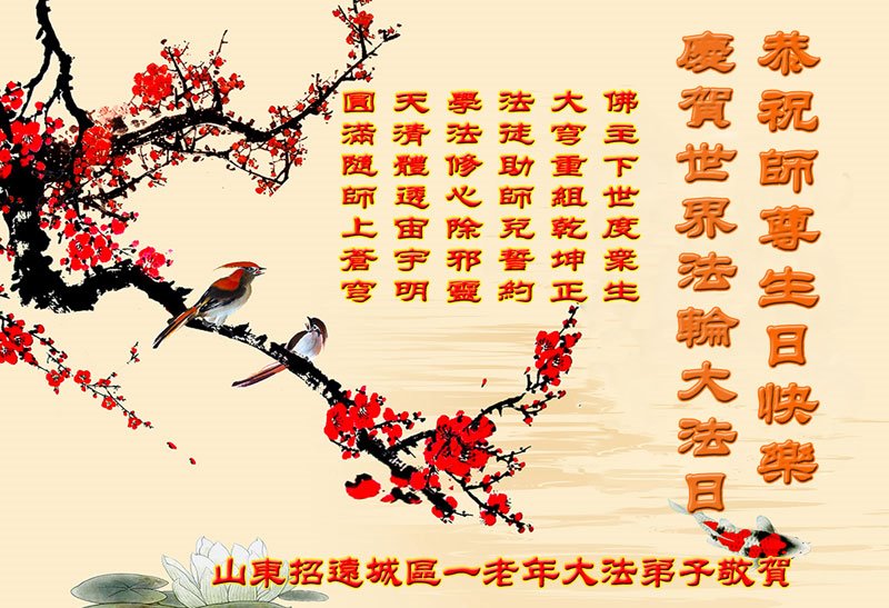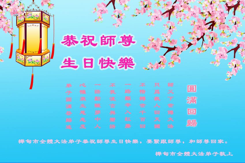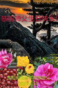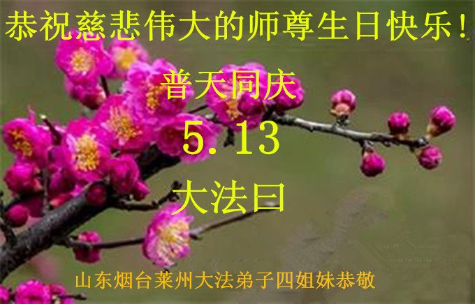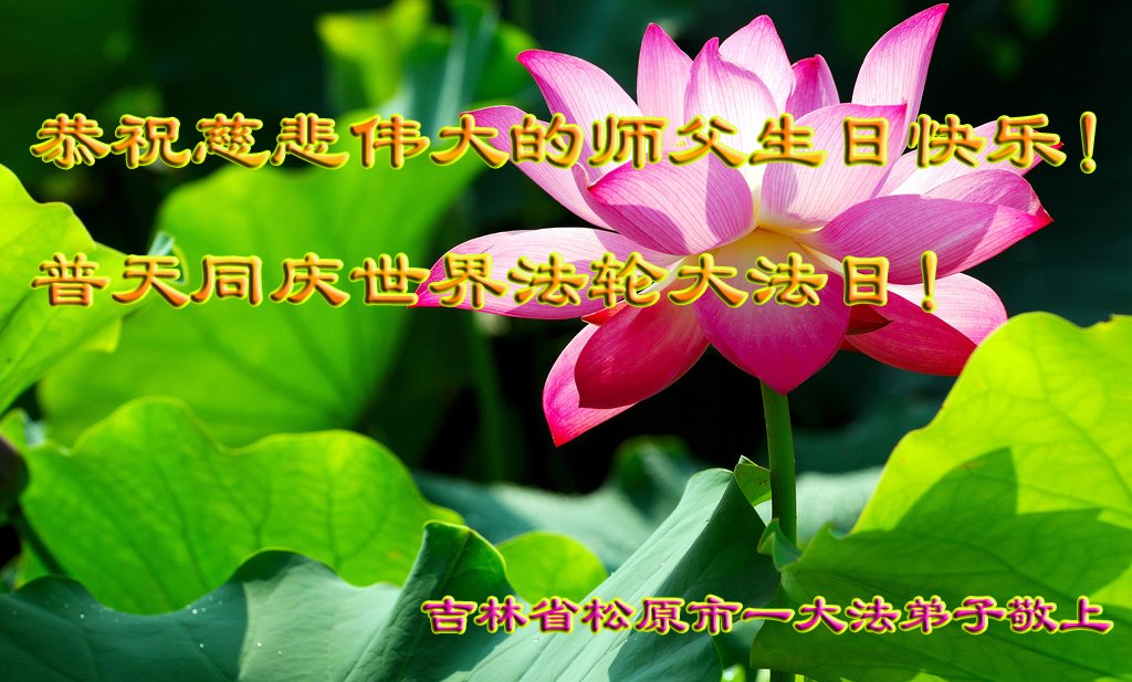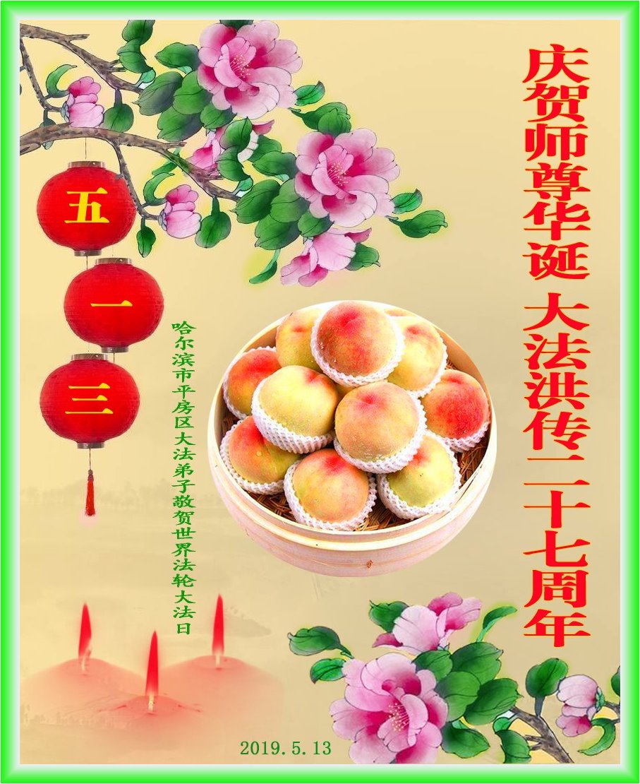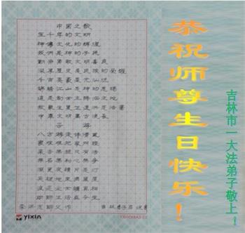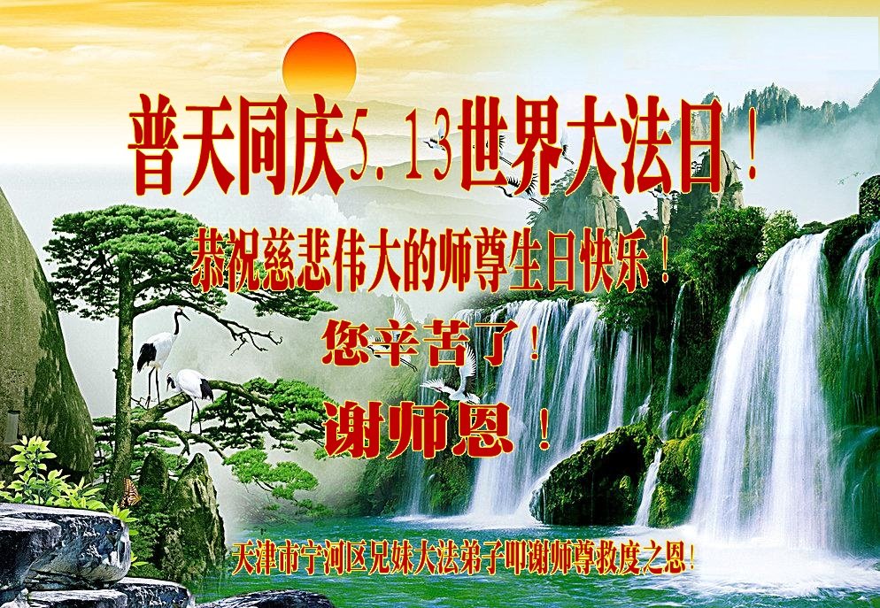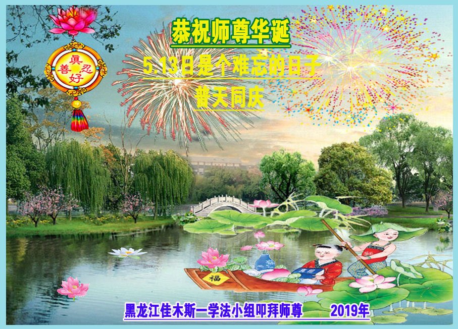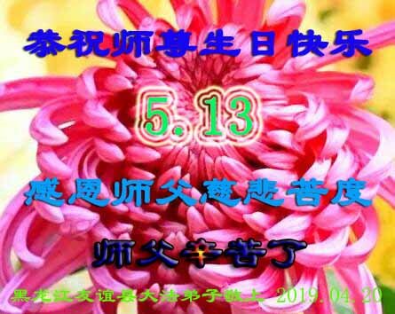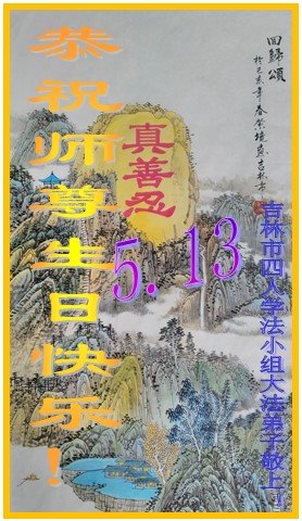普天同庆“世界法轮大法日”,“法轮大法好”、“真善忍好” 九字吉言传洪宇。恭祝师尊生日快乐!谢师恩!弟子再精進。