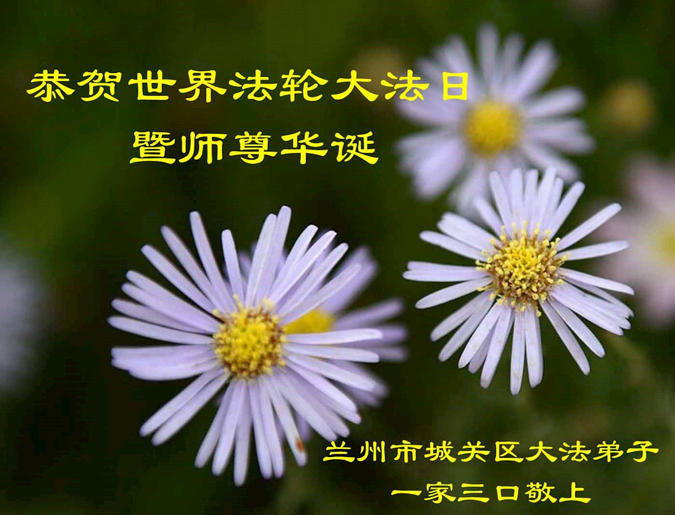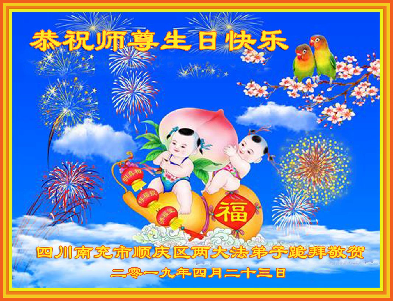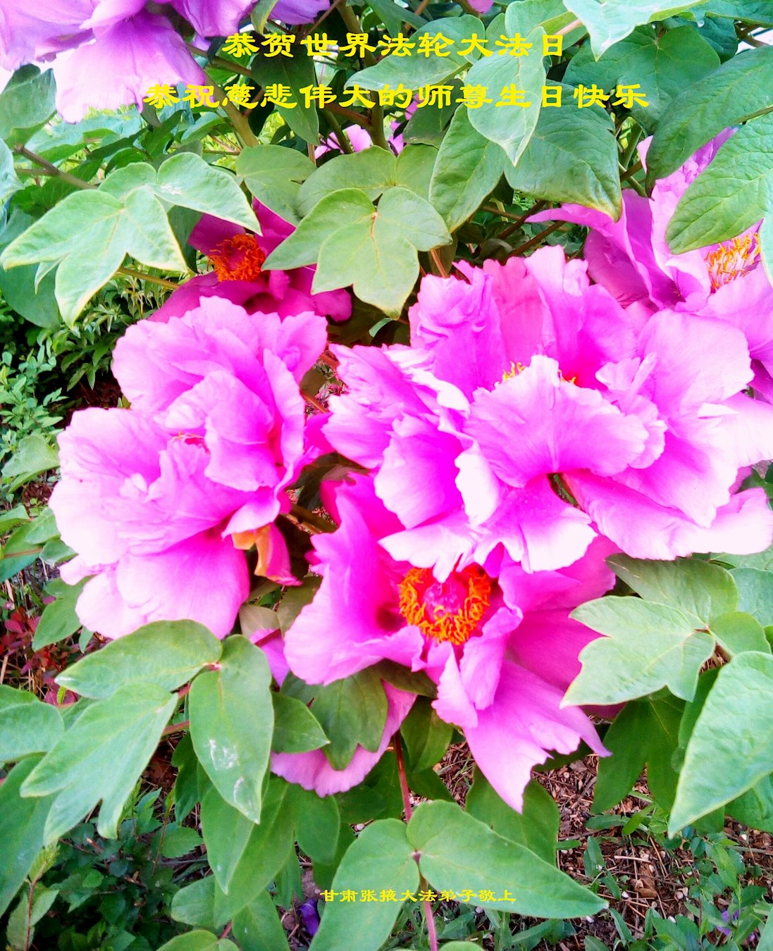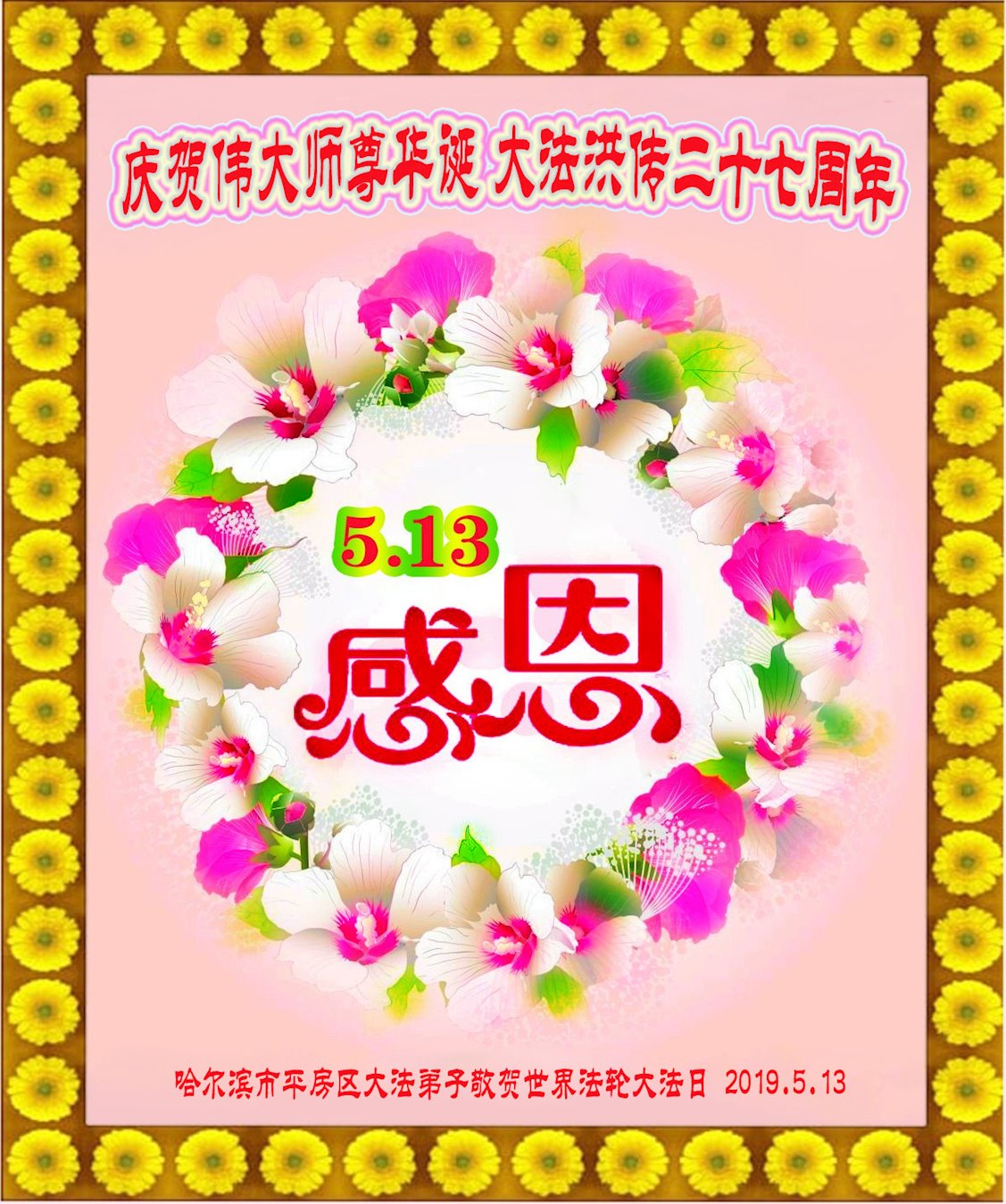 普天同庆“世界法轮大法日”,“法轮大法好”、“真善忍好” 九字吉言传洪宇。恭祝师尊生日快乐!谢师恩!弟子再精進。